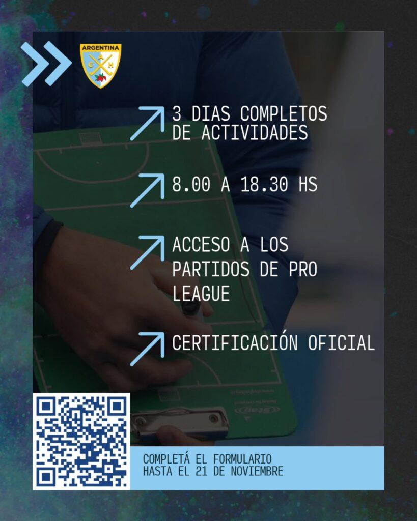 La capacitación oficial de la Confederación Argentina de Hockey se realizará del 11 al 13 de diciembre en el Polideportivo Provincial, con acceso a partidos de la Pro League y cupos limitados.