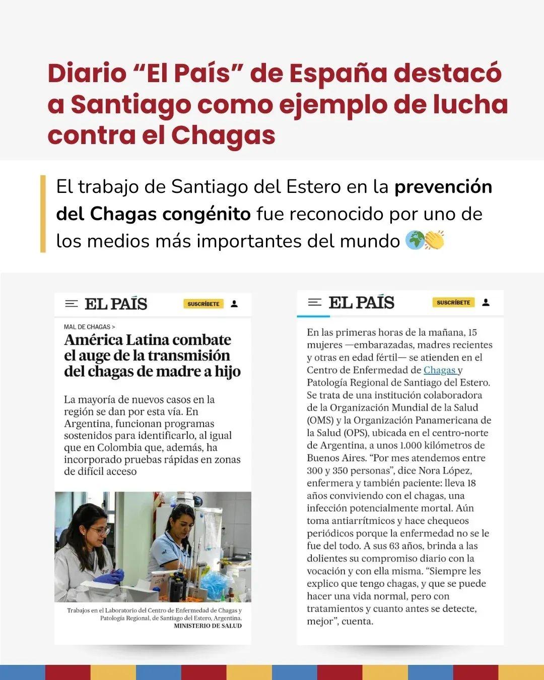 El diario español El País reconoció la estrategia sanitaria de la provincia en la lucha contra la transmisión madre-hijo del Chagas, destacando los avances en diagnóstico, tratamiento y prevención.