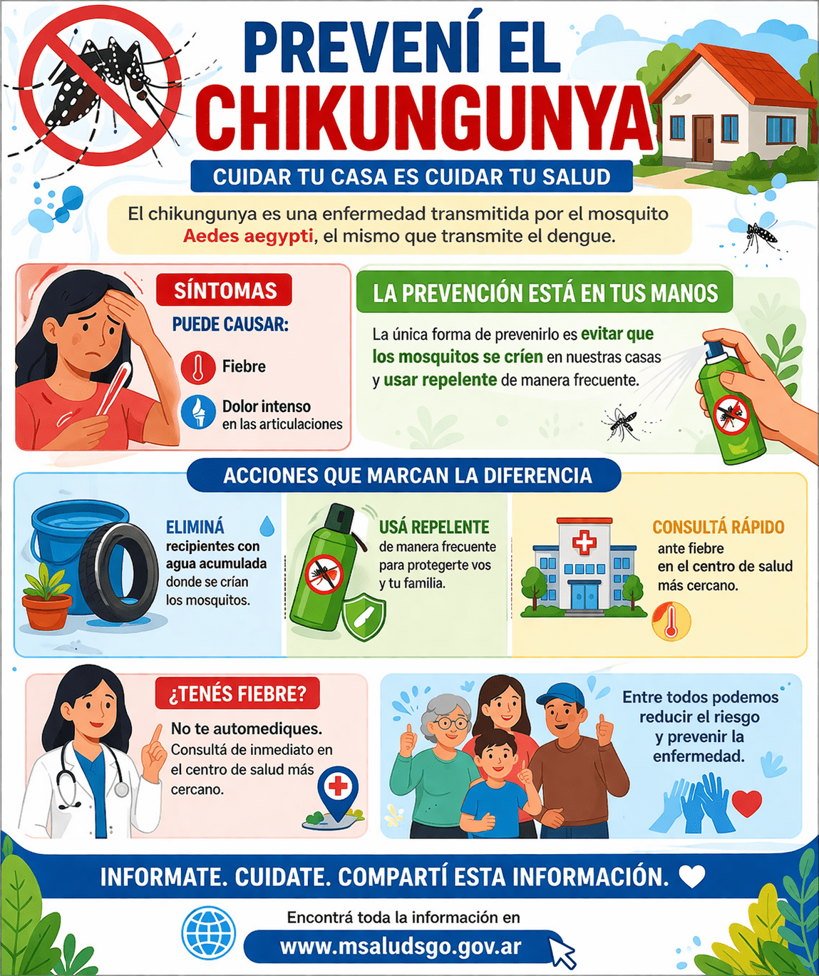 El cuidado de la salud empieza en casa, y con pequeñas acciones diarias es posible prevenir enfermedades como el chikungunya, transmitido por el mosquito Aedes aegypti.