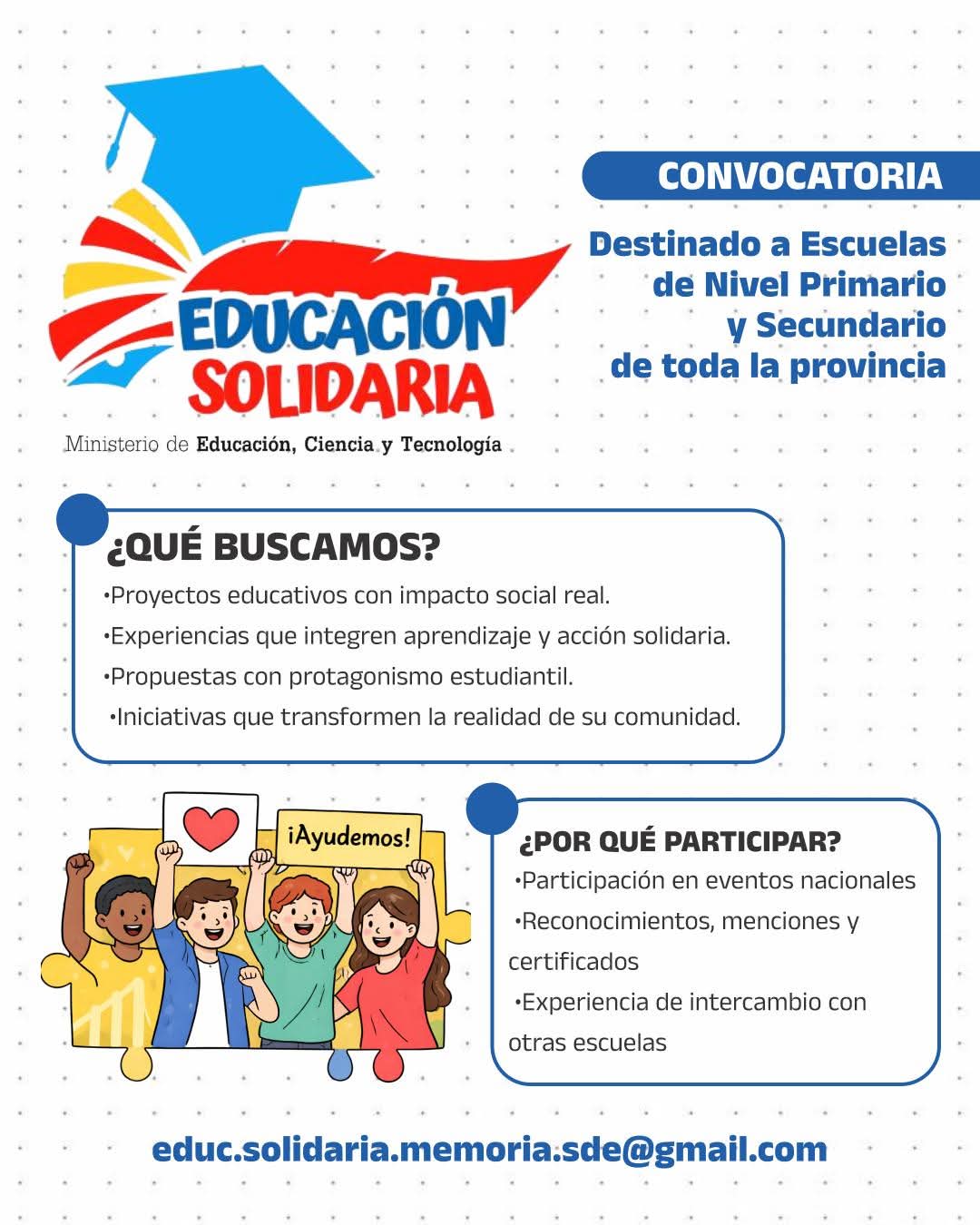 Convocan a escuelas santiagueñas a participar de Educación Solidaria 2026
