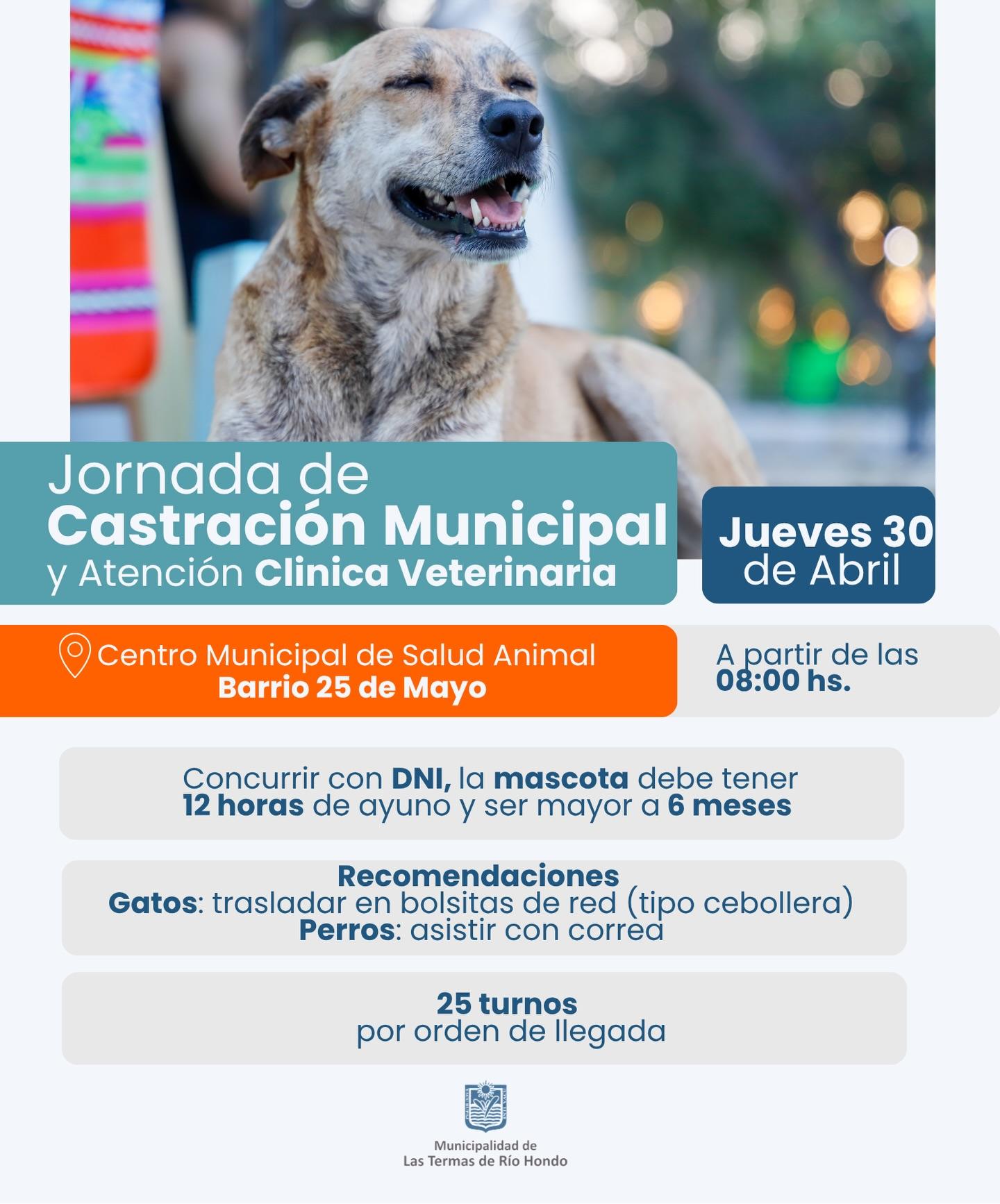 En el marco de las políticas de sanidad y control poblacional de mascotas, la Municipalidad de Las Termas de Río Hondo confirmó una nueva Jornada de Castración Municipal y Atención Clínica Veterinaria. La actividad se llevará a cabo este jueves 30 de abril y busca facilitar el acceso a este servicio esencial para los vecinos de la zona y alrededores.