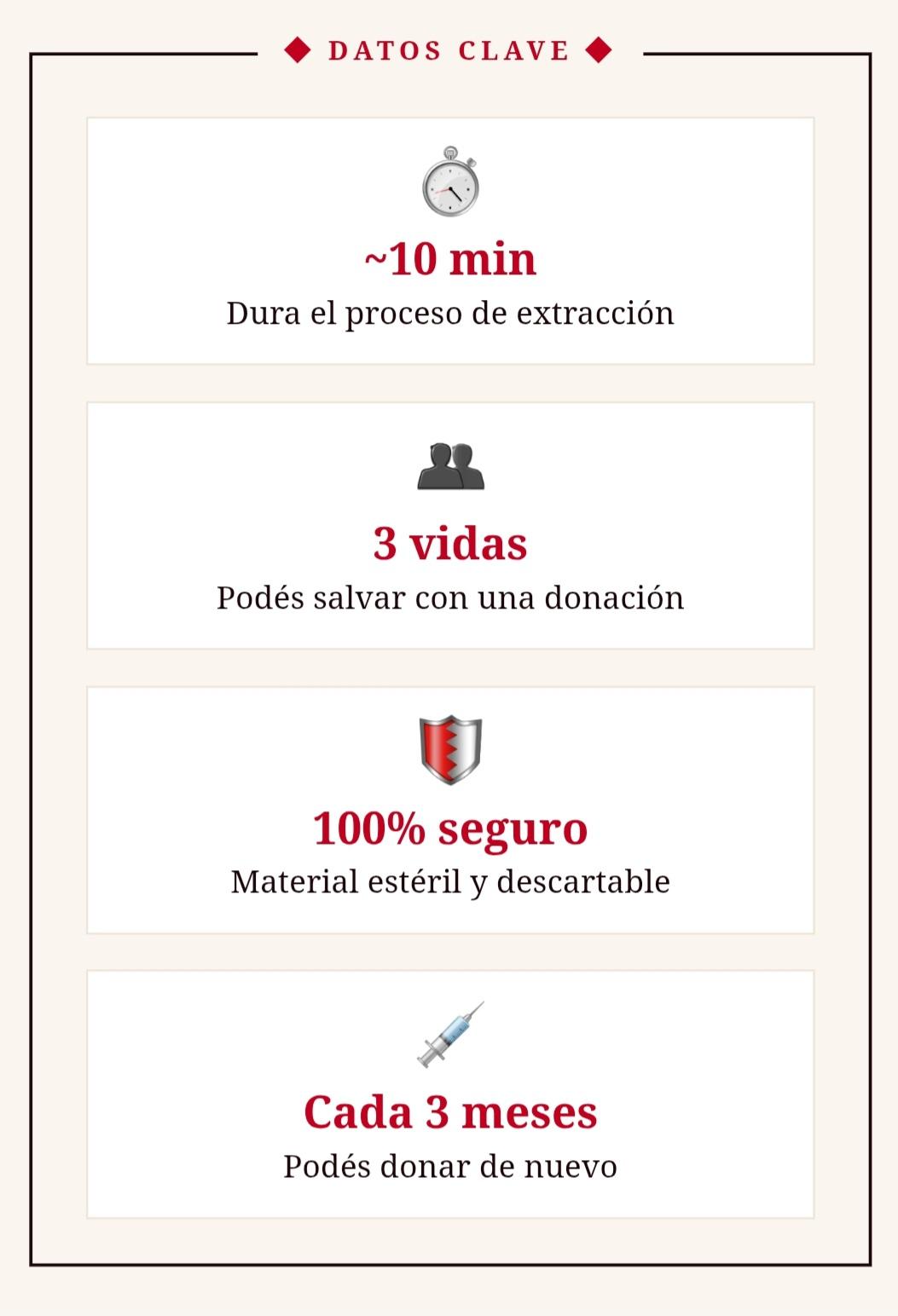 El proceso es seguro, rápido e indoloro. El organismo repone el volumen sanguíneo en pocas horas y una sola donación puede beneficiar hasta tres personas distintas.