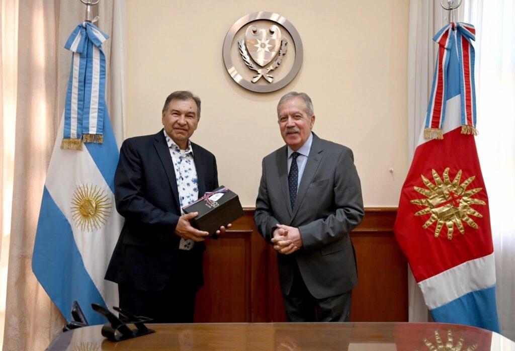 El gobernador Elías Suárez recibió en Casa de Gobierno al pastor principal de la Iglesia Pentecostal Unida de Argentina, Jorge Orueta, en el marco de una reunión institucional donde se presentó oficialmente el Congreso Nacional de Pastores que se llevará a cabo los días 17 y 18 de abril en el Centro de Convenciones Fórum.