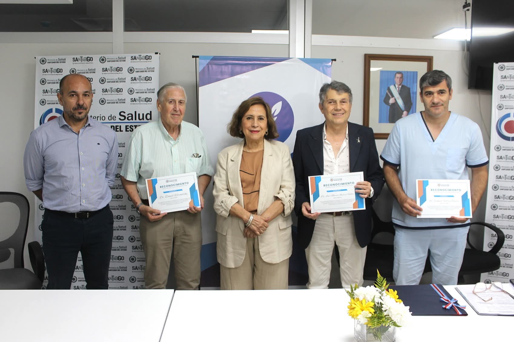 Los homenajeados fueron el Dr. Rafael Eduardo Manzur, el Lic. Exequiel Federico Duarte, el Dr. Luis María Álvarez Valdés y el Dr. Daniel Werenitzky, quienes recibieron una distinción por su compromiso, responsabilidad y aporte permanente al desarrollo de una investigación ética y segura en la provincia.