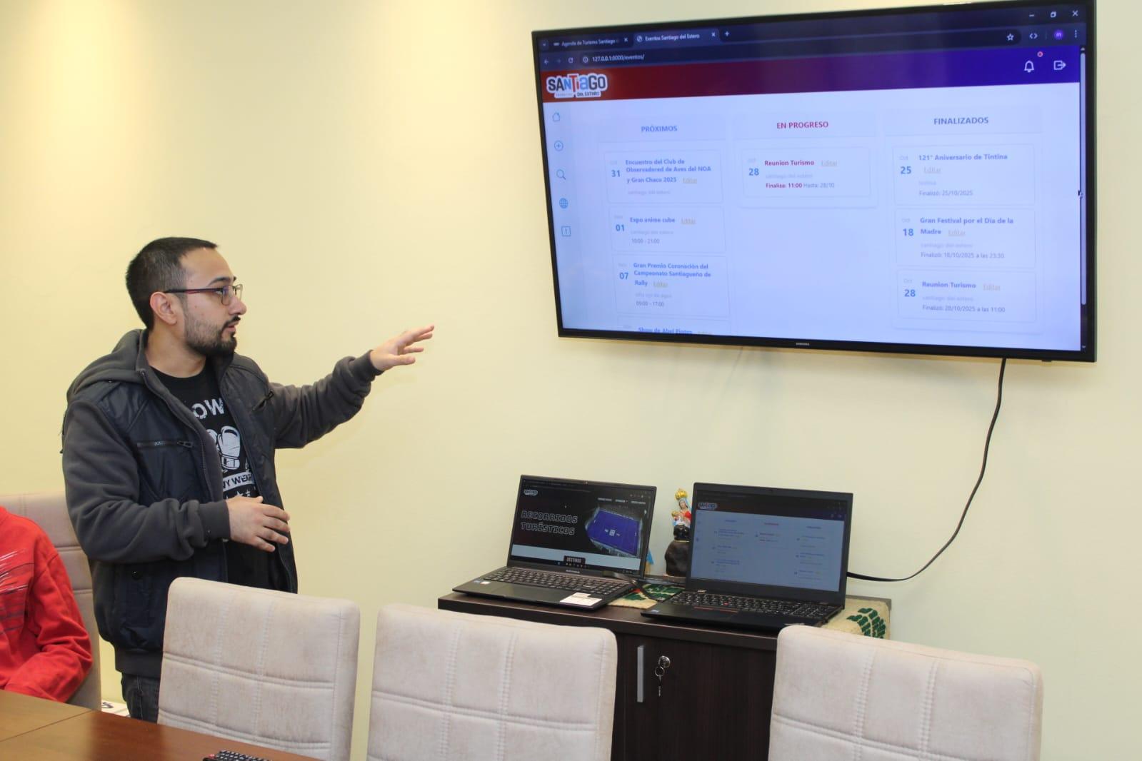 En una reunión con el Subsecretario de Turismo, Nelson Bravo, estudiantes del Instituto Tecnológico de Santiago del Estero (ITSE) presentaron los avances de un software desarrollado como parte de sus prácticas profesionales. La aplicación está pensada para ordenar y visibilizar las actividades culturales, deportivas, artísticas y sociales que se realizan en toda la provincia, facilitando el acceso del sector turístico a través de una página web o una App.