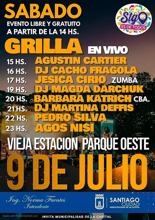 El sábado 9 de julio, en el marco de los festejos por el 469° aniversario de la ciudad, la Municipalidad de la Capital realizará el festival “Santiago es de Todos” en el Parque Oeste, desde las 14 hasta la medianoche, con entrada libre y gratuita.
