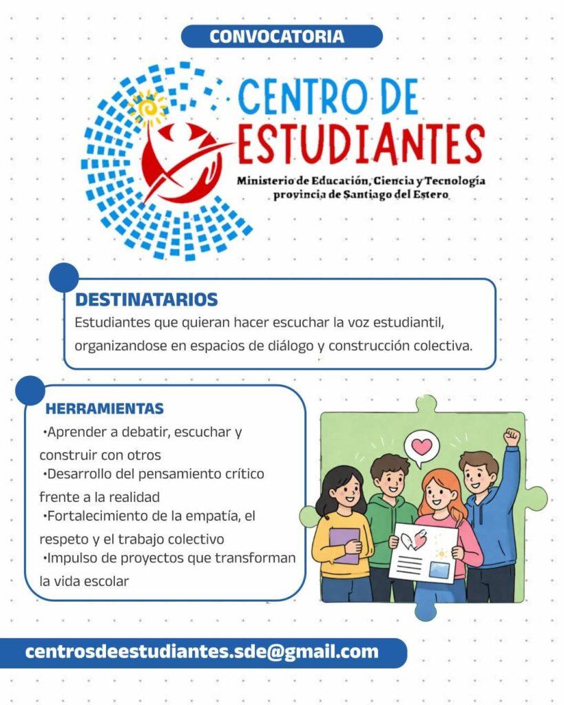 Con el objetivo de consolidar escuelas más participativas y comprometidas, se lanzó una convocatoria destinada a estudiantes y docentes de nivel secundario de Santiago del Estero para crear o fortalecer Centros de Estudiantes.