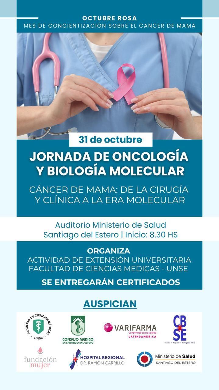 En el Mes de Concientización sobre el Cáncer de Mama, conocido como “Octubre Rosa”, la Facultad de Ciencias Médicas de la Universidad Nacional de Santiago del Estero invita a participar de la Jornada de Oncología y Biología Molecular: “Cáncer de Mama: de la cirugía y clínica a la era molecular”.