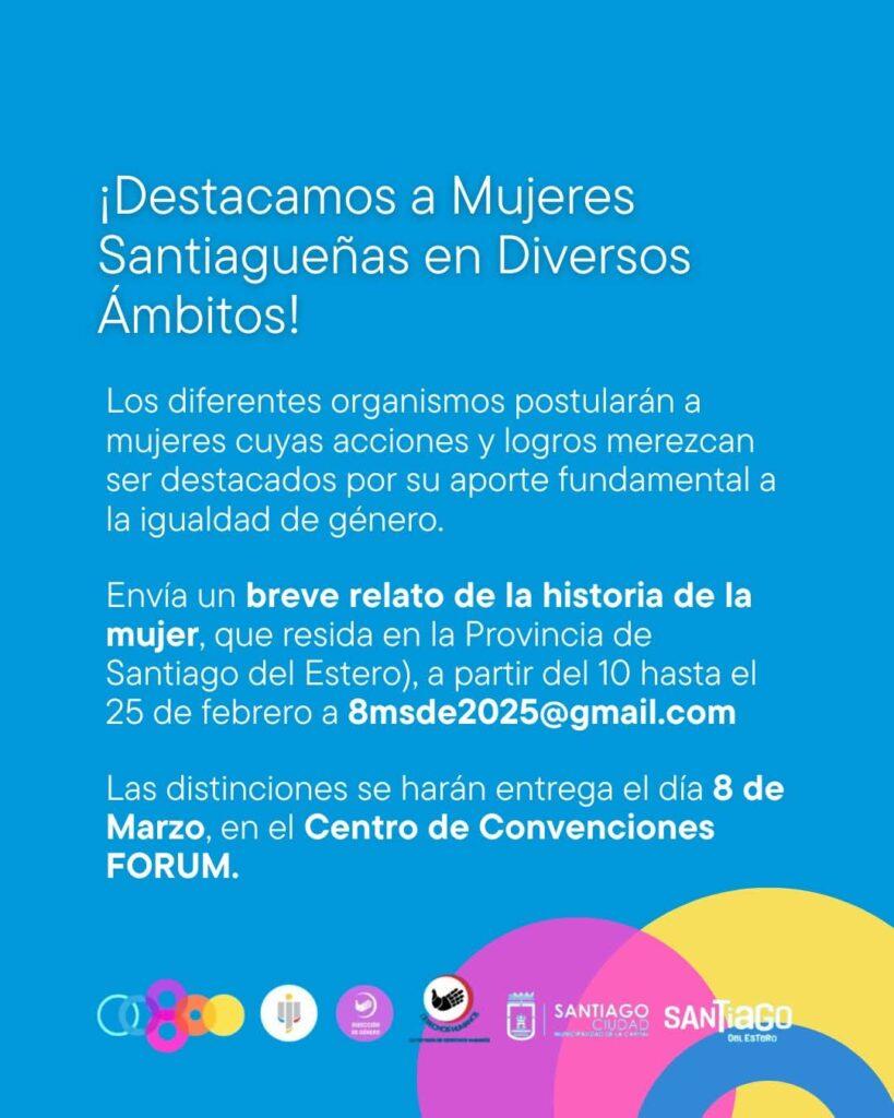 Los organismos del Estado, instituciones educativas, deportivas, asociaciones, empresas, fundaciones y comunidades religiosas, entre otros, pueden participar postulando a mujeres que merezcan ser destacadas por sus acciones y logros.