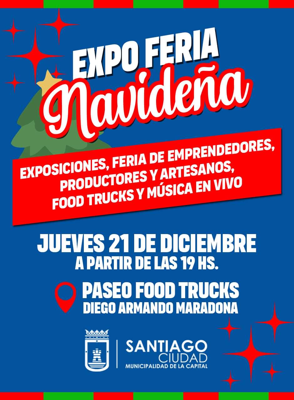 El próximo jueves 21 a partir de las 19 horas, la Municipalidad de la Capital realizará una Feria Navideña en el Paseo de los Food Trucks Diego Armando Maradona, donde vecinos y turistas podrán disfrutar de exposiciones de emprendedores locales, food trucks y música en vivo.