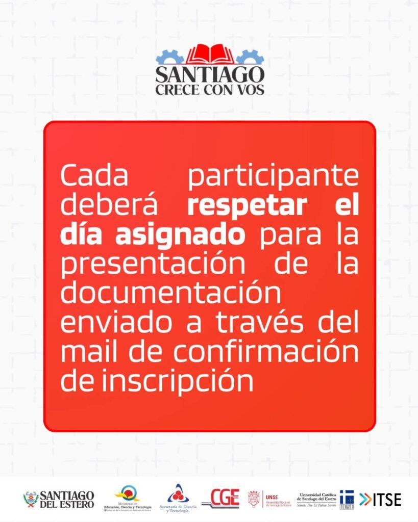 El programa informa a los inscriptos los detalles para la presentación de la documentación. Es fundamental respetar el día asignado que figura en el mail de confirmación.