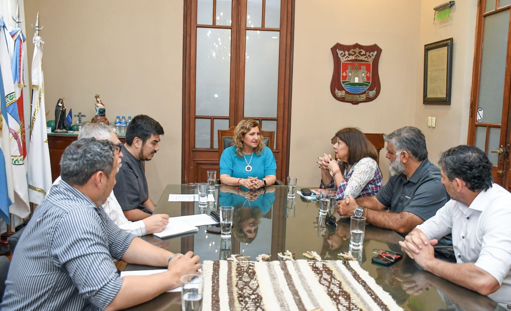 Del encuentro participaron la vicepresidenta Liliana Coronel, el revisor de cuentas Alejandro Sansierra y el vocal Francisco Jiménez, junto al subsecretario de Gobierno Diego Brunet y el subsecretario de Desarrollo Mauro Kalinski.