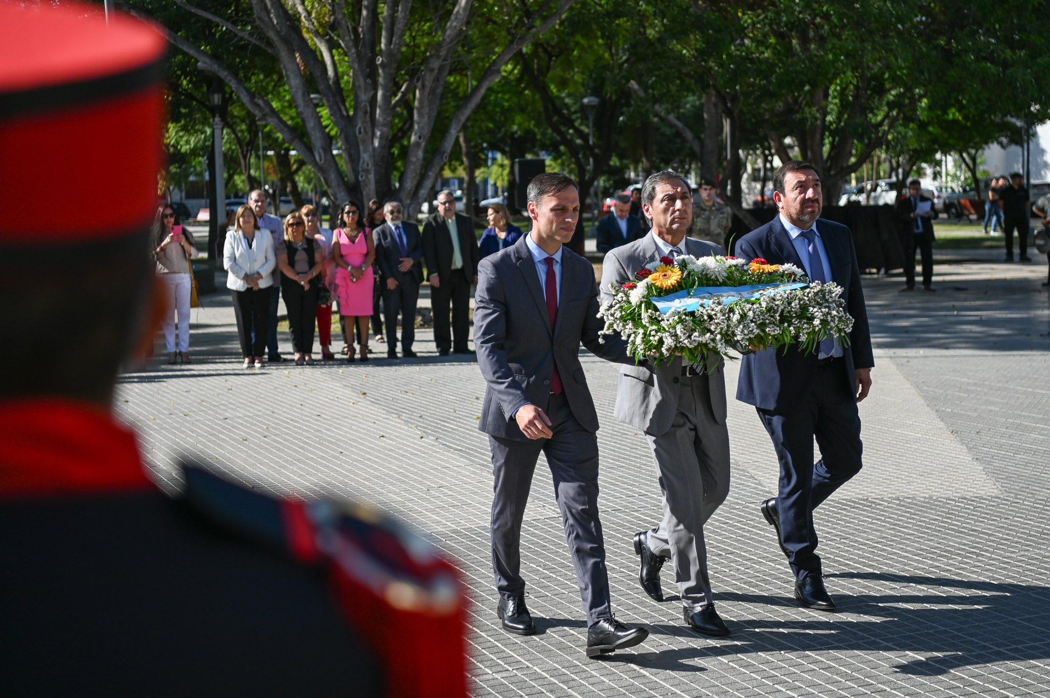 «Renovamos el compromiso de mantener vivos los ideales de libertad que guiaron su gesta, trabajando cada día por una Argentina más justa», señalaron las autoridades durante la ofrenda floral.