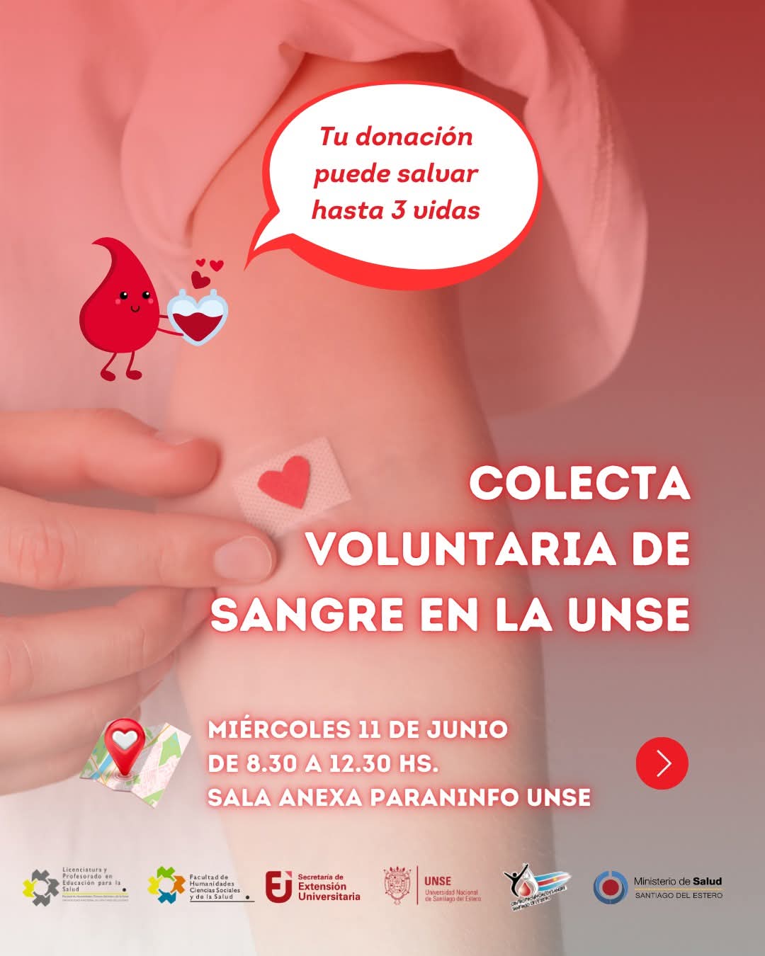 La comunidad tiene la oportunidad de sumarse a una jornada de donación de sangre y registro de donantes de médula ósea, organizada por el Centro Provincial de Sangre del Ministerio de Salud, junto a la Secretaría de Extensión Universitaria de la UNSE y la Cátedra de Comunicación para la Salud de la carrera de Educación para la Salud.