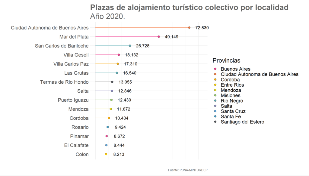 En un estudio del Padrón Único Nacional de Alojamiento (PUNA) en el 2020, la ciudad spa está dentro del top 10 del ranking de localidades con mayor cantidad de pla,as hoteleras colectivas.