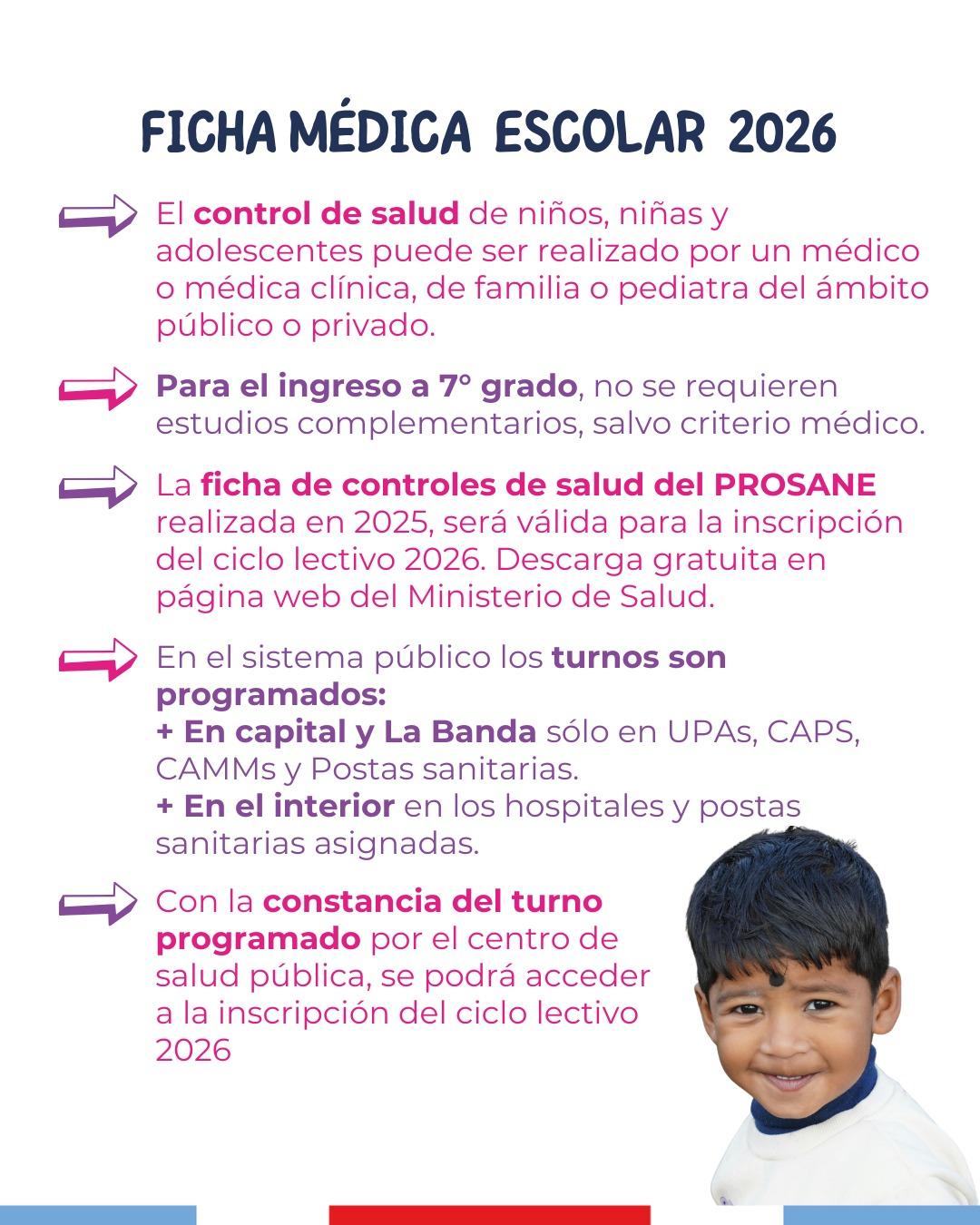 Se acerca el comienzo de clases y la salud de nuestros niños y adolescentes es la prioridad. Antes de que suene el primer timbre del 2026, es fundamental realizar el control de salud integral para asegurar que los estudiantes estén en óptimas condiciones para aprender y jugar.