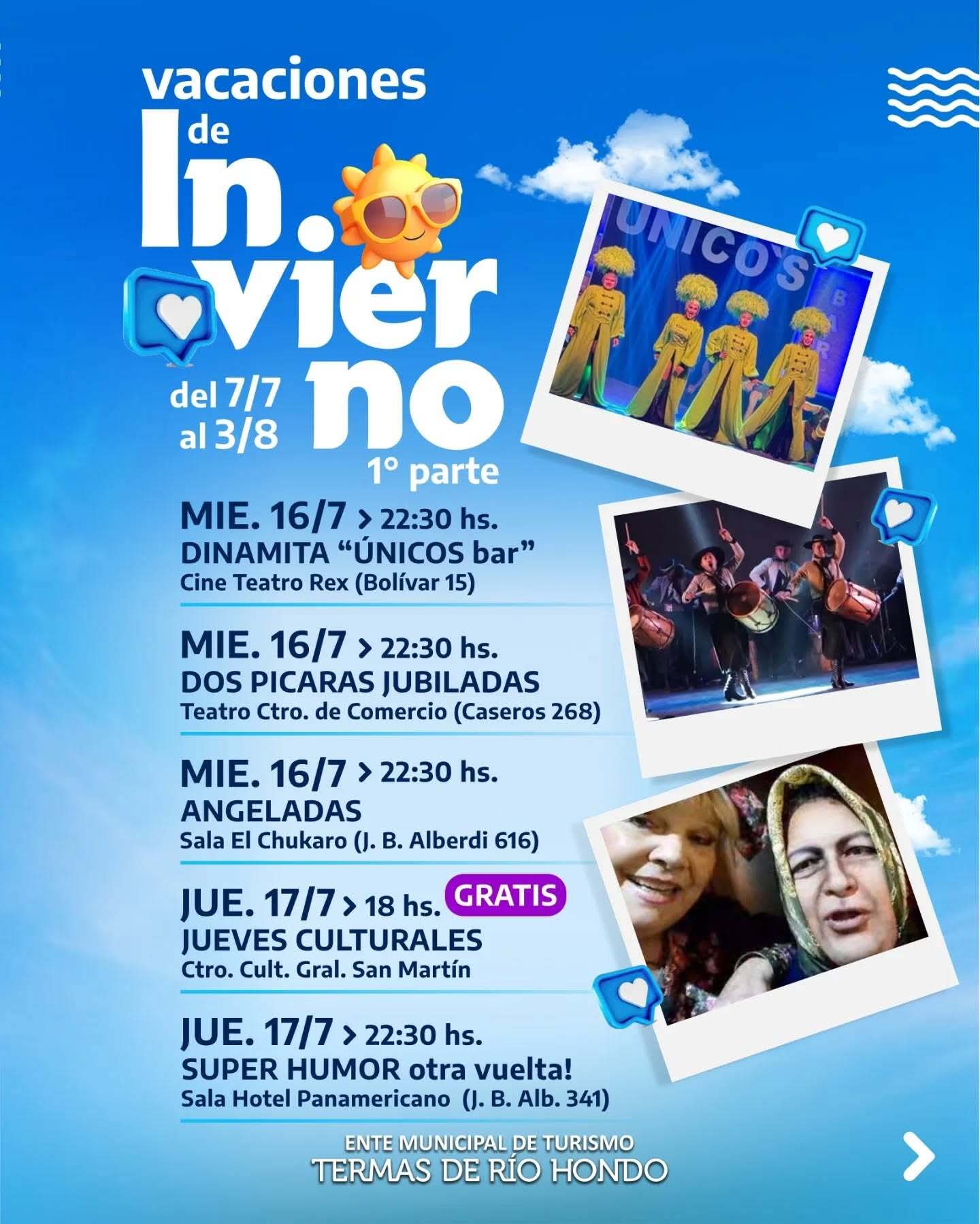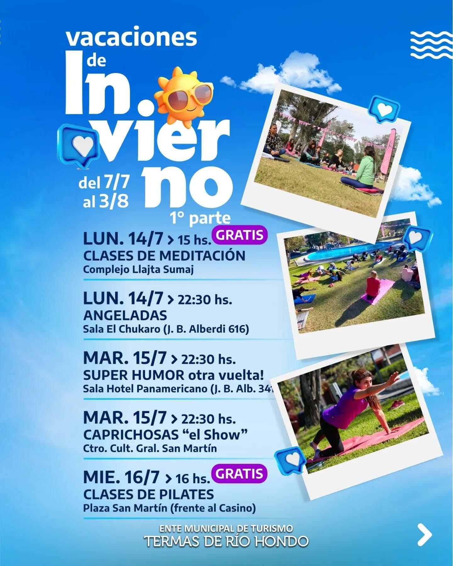 Del 7 al 20 de julio, Las Termas de Río Hondo te esperan con una variada agenda de actividades para disfrutar en familia. La ciudad ofrece una excelente oportunidad para relajarte, moverte y vivir la ciudad desde su costado más activo y cultural.